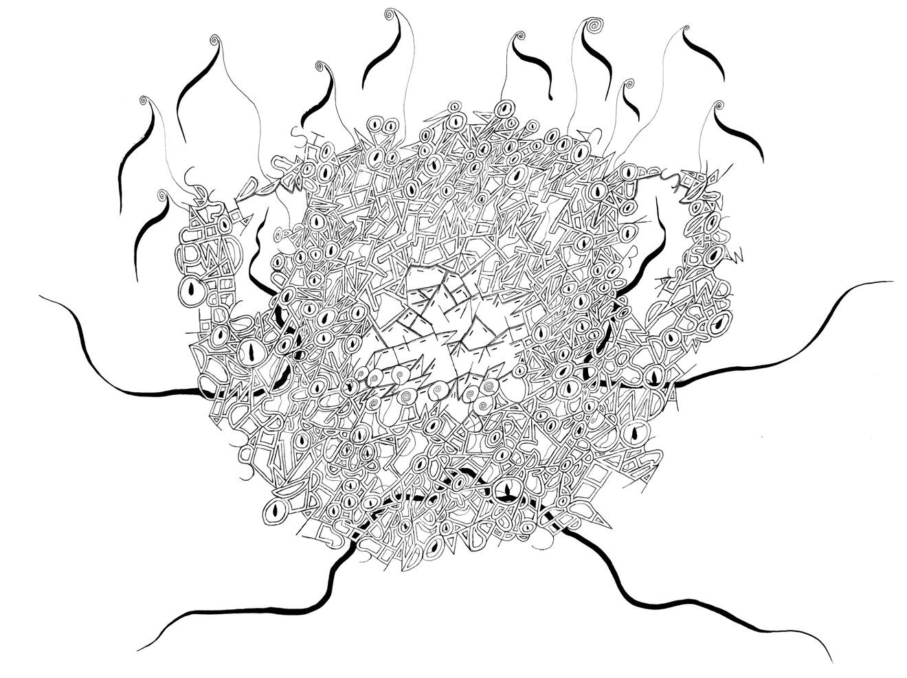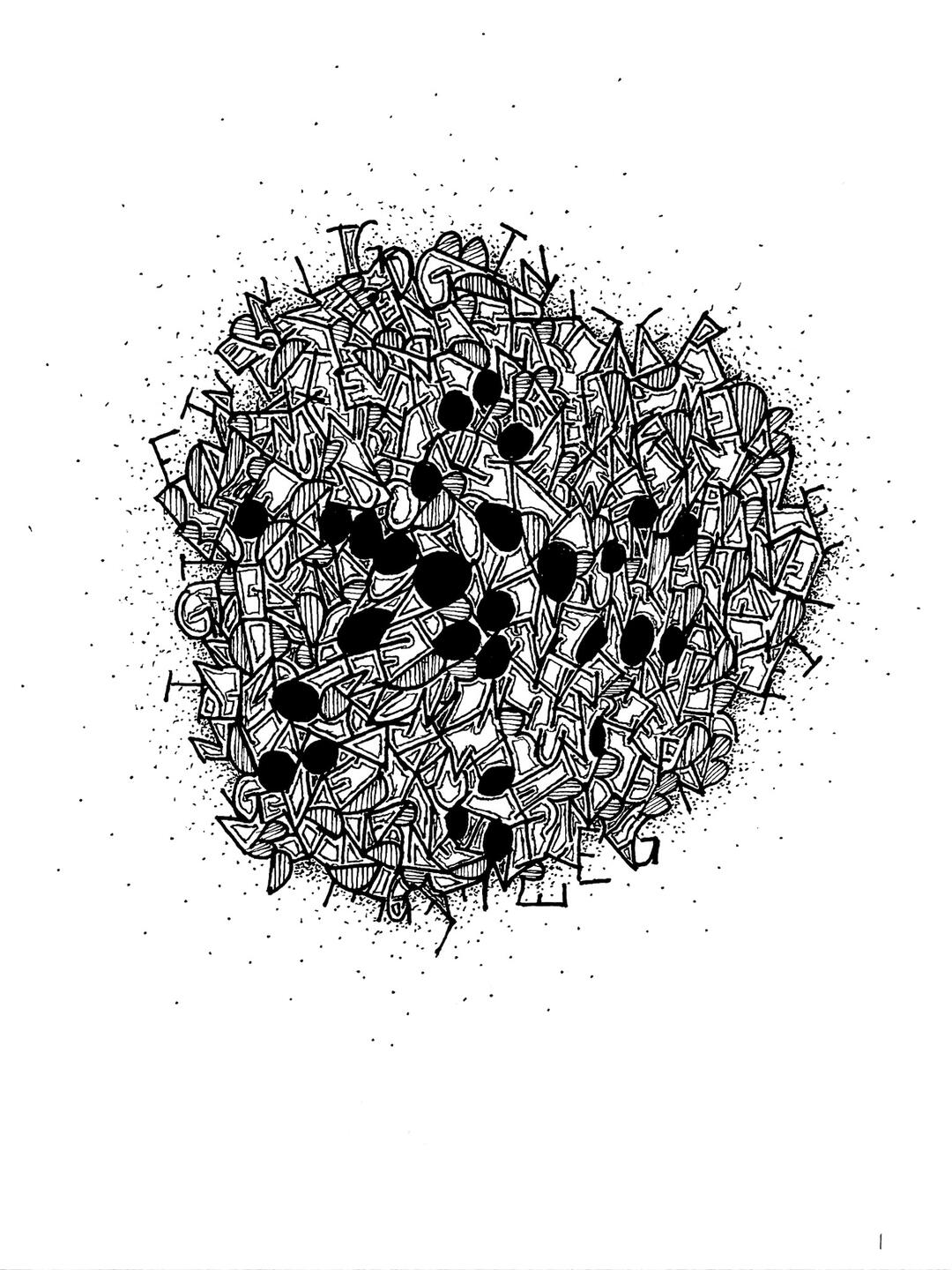 These ink drawings are all based off of a phrase, and built using the words of the phrase. They started as doodles to pass time, and evolved into visual poems with I spy overtones.The first is called Think On Your Shadows, and the last is titled No More Dreams